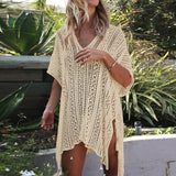 Bohemian tunic coverup dress, allover crochet detail, long sleeve and semi-fitted show off your curve, perfect for summer beach holiday or pool party.